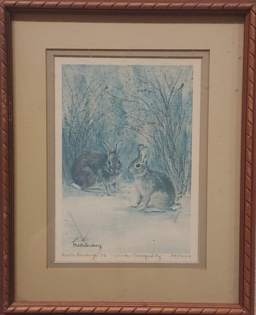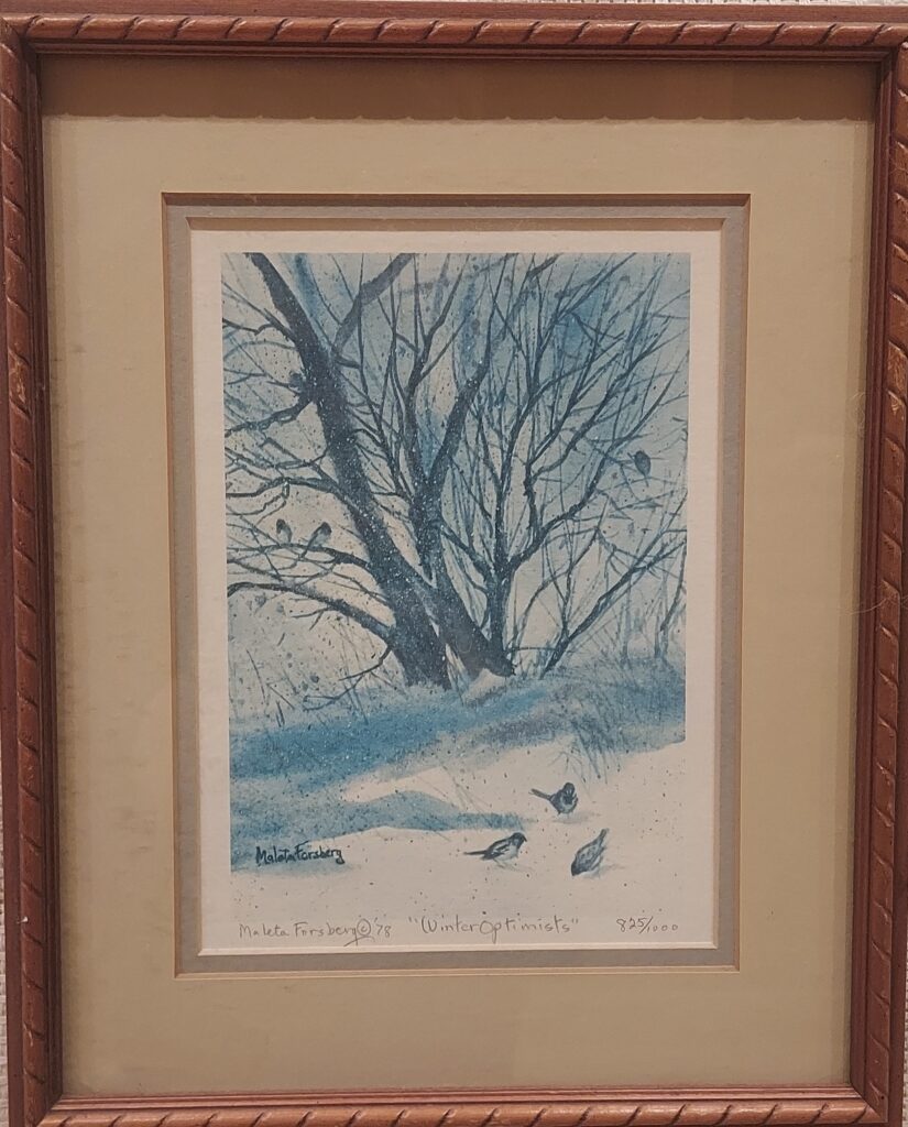 Winter Tranquility by Maleta Forsberg (1932-2025), 1978, color facsimile, completed in 281 out of 1000 editions, in good condition. Price: $20.