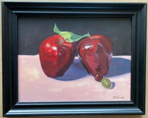 Red on the Left – Wheat on the Right by Ralph Fontenot (Manhattan, KS) 2001, watercolor, 4 x 4 inches, framed to 7 1/2 x 7 1/2 inches, in excellent condition. Price $175