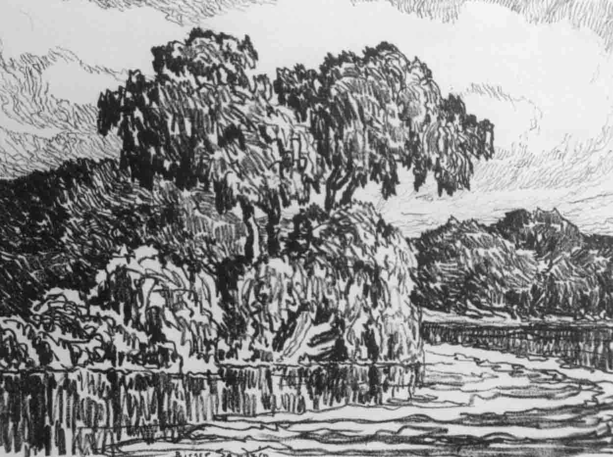 Stream with Willows by Birger Sandzén, 1923, lithograph, completed in one edition of 100, 7 3/4 x 11 3/4 inches, acid-free matted, in very good condition. Price: $500