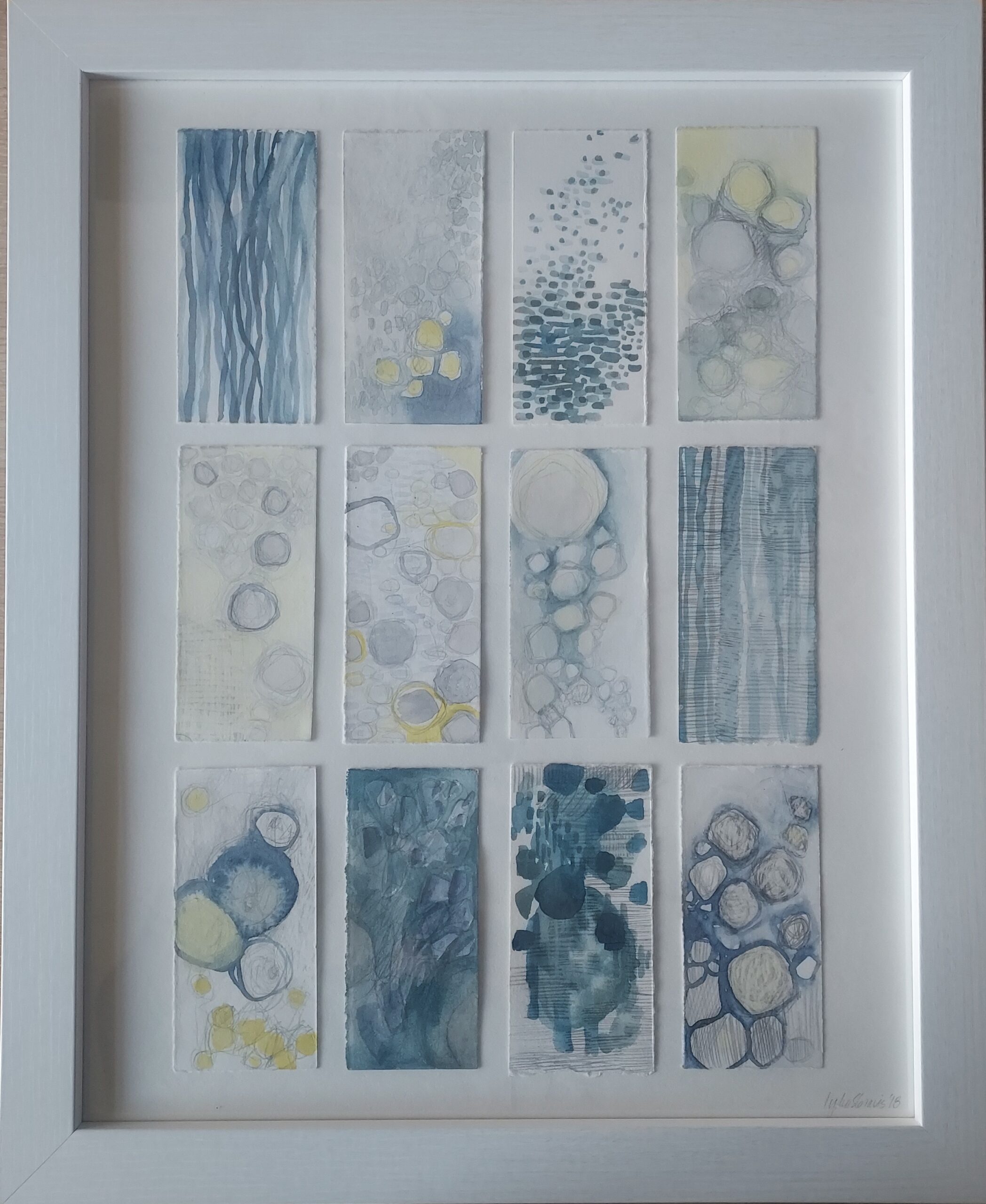 Fragments by Lydia Gravis (Ogden, UT), 2018, watercolor and graphite on paper, 19 x 15 inches, framed to 22 x 18 inches, excellent condition. Price: $250