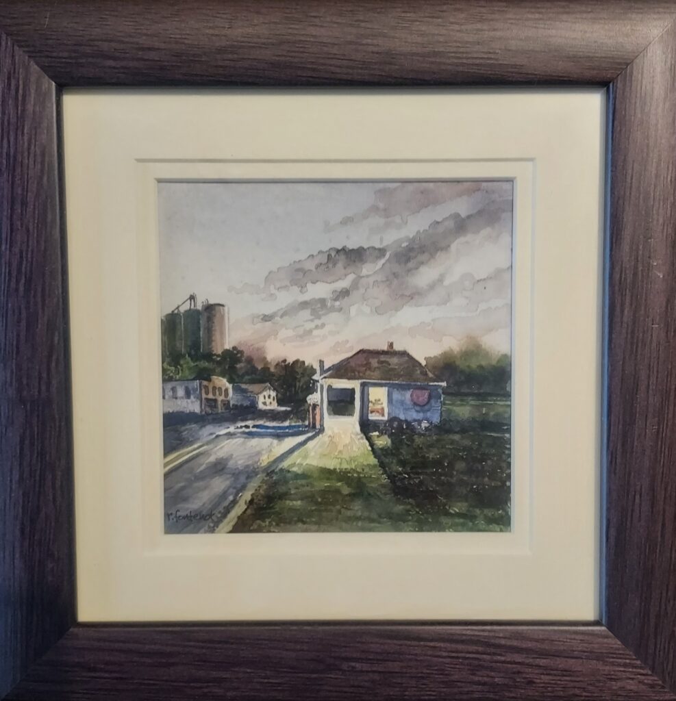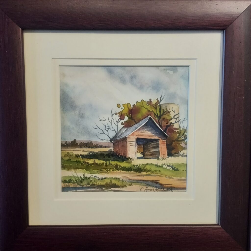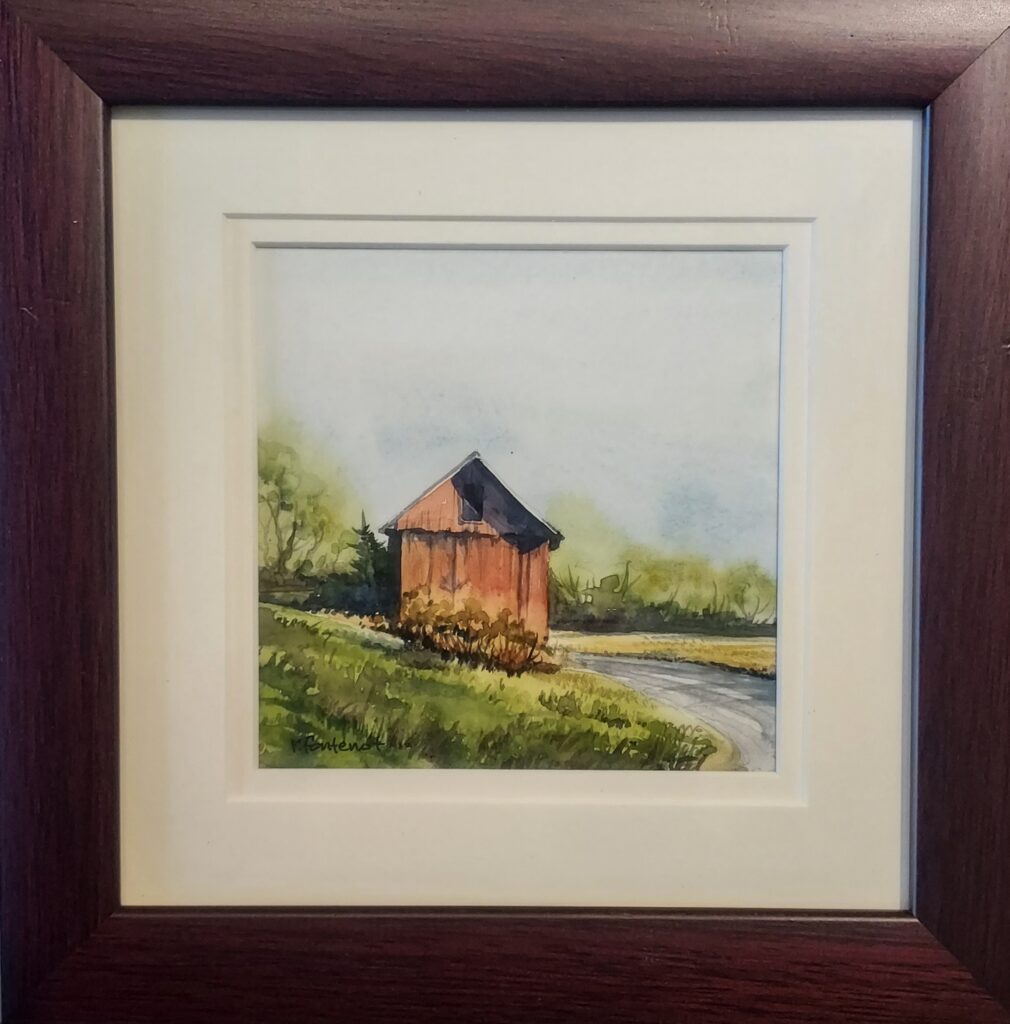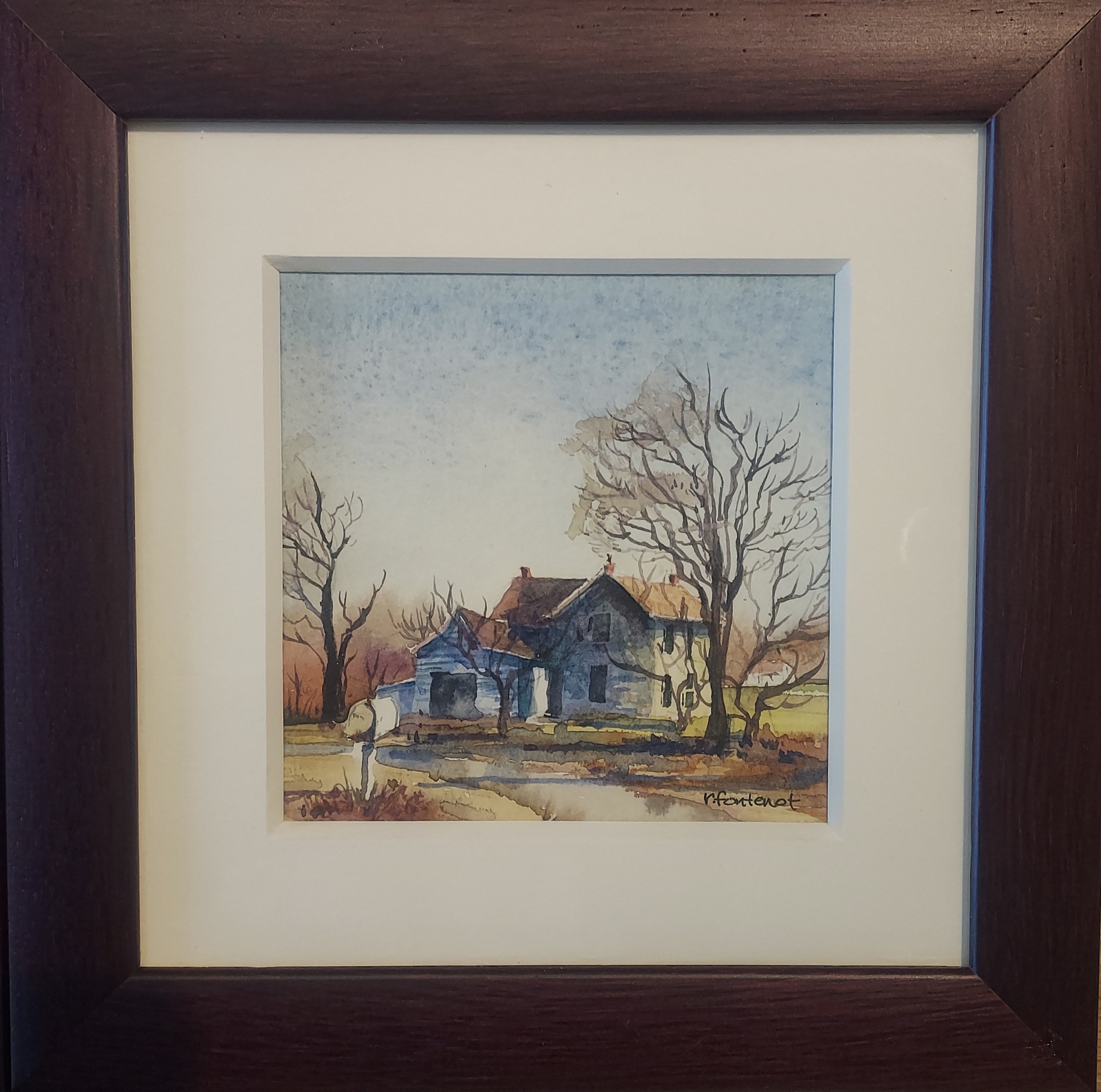 Powers Lane by Ralph Fontenot (Manhattan, KS) 2001, watercolor, 4 x 4 inches, framed to 7 1/2 x 7 1/2 inches, in excellent condition. Price $175