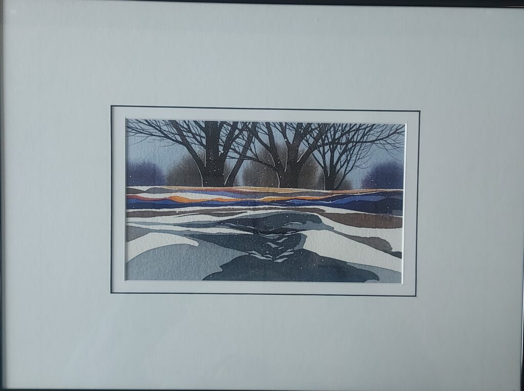 462.14 (10-10-93) Park West of Knollwood by Barbara Waterman-Peters, 1993, watercolor, 3 1/4 x 5 1/4 inches, framed to 11 x 13 inches, in very good condition. Price: $150