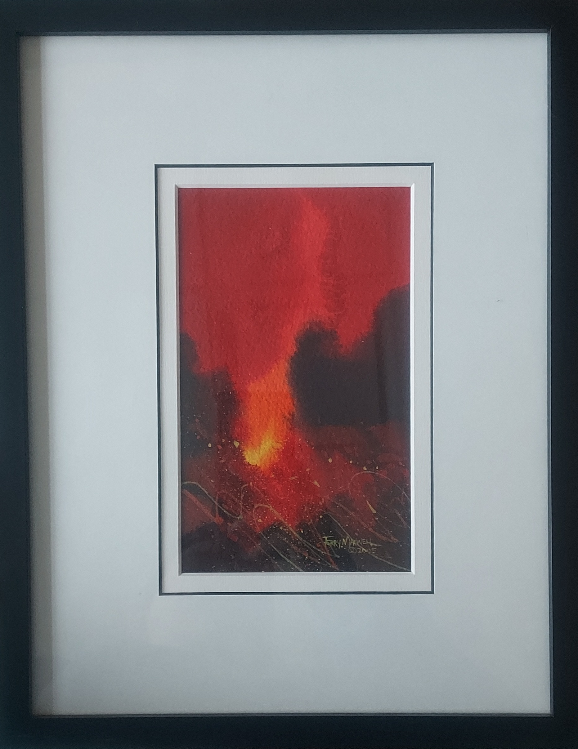 Indian Summer by Ralph Fontenot (Manhattan, KS) 2000, watercolor, 4 x 4 inches, framed to 7 1/2 x 7 1/2 inches, in excellent condition. Price $175