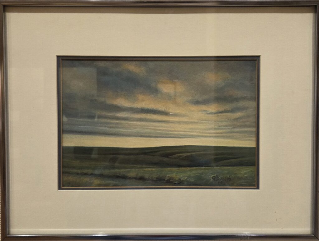 Prairie Landscape by Gordon Bulloch (Wichita, 1923-2016), 1981, pastel, 6 1/2 x 10 inches, framed to 12 x 16 inches, in good condition. Price $150