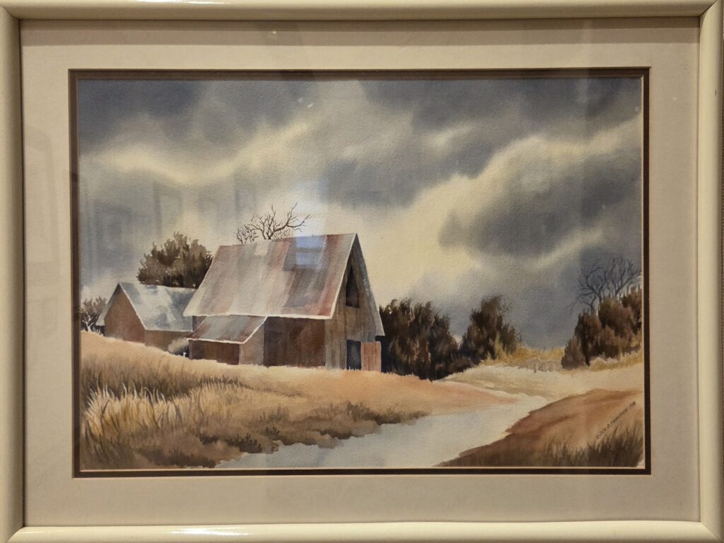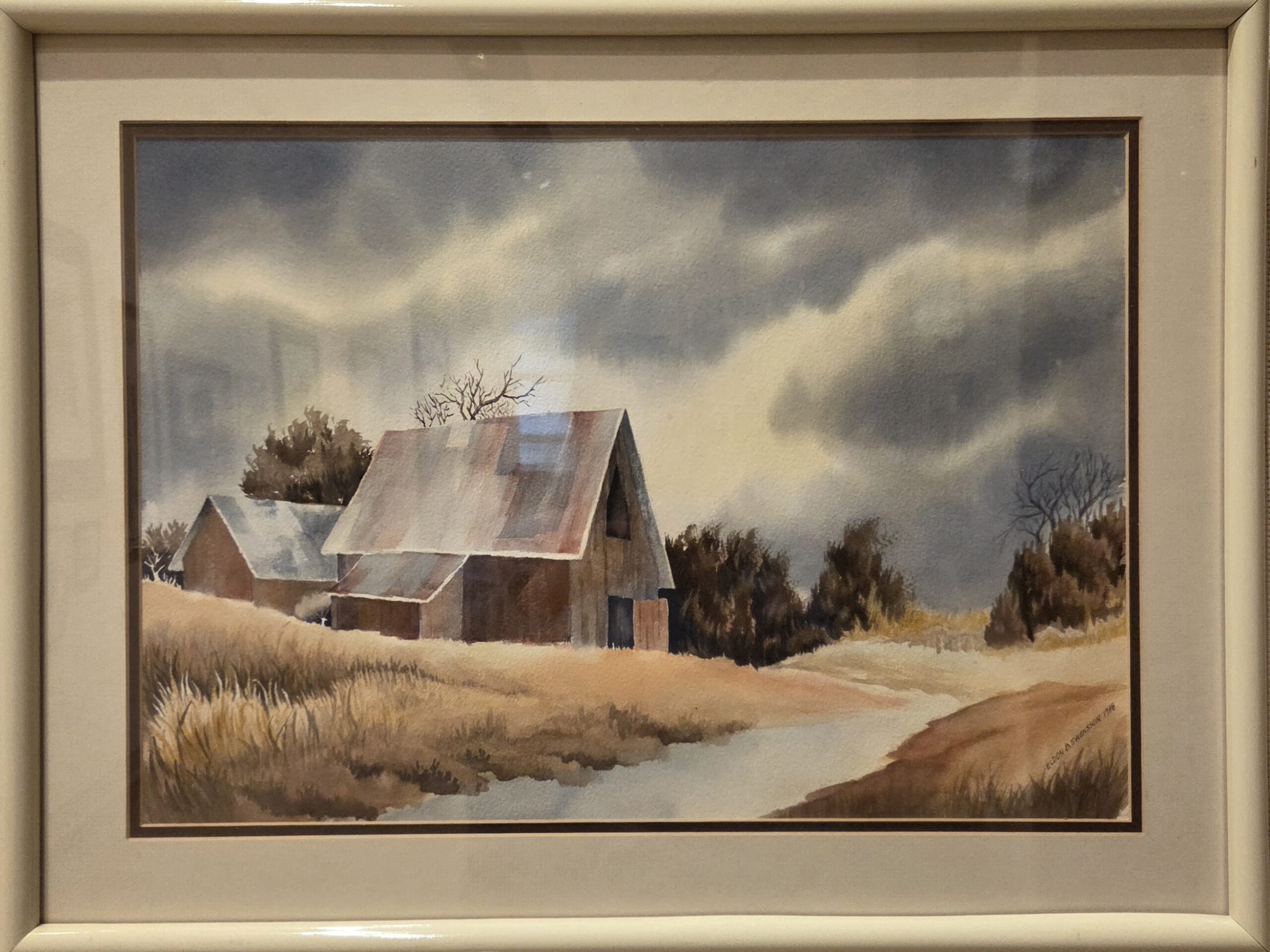 Untitled (Barn) by Eldon Swensson, 1988, watercolor, 14 x 20 inches, framed to 19 x 25 inches, in good condition. Price $200