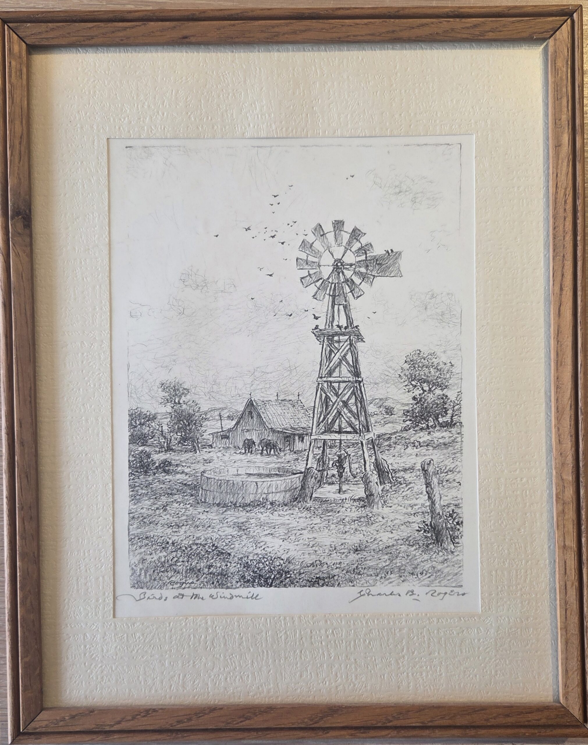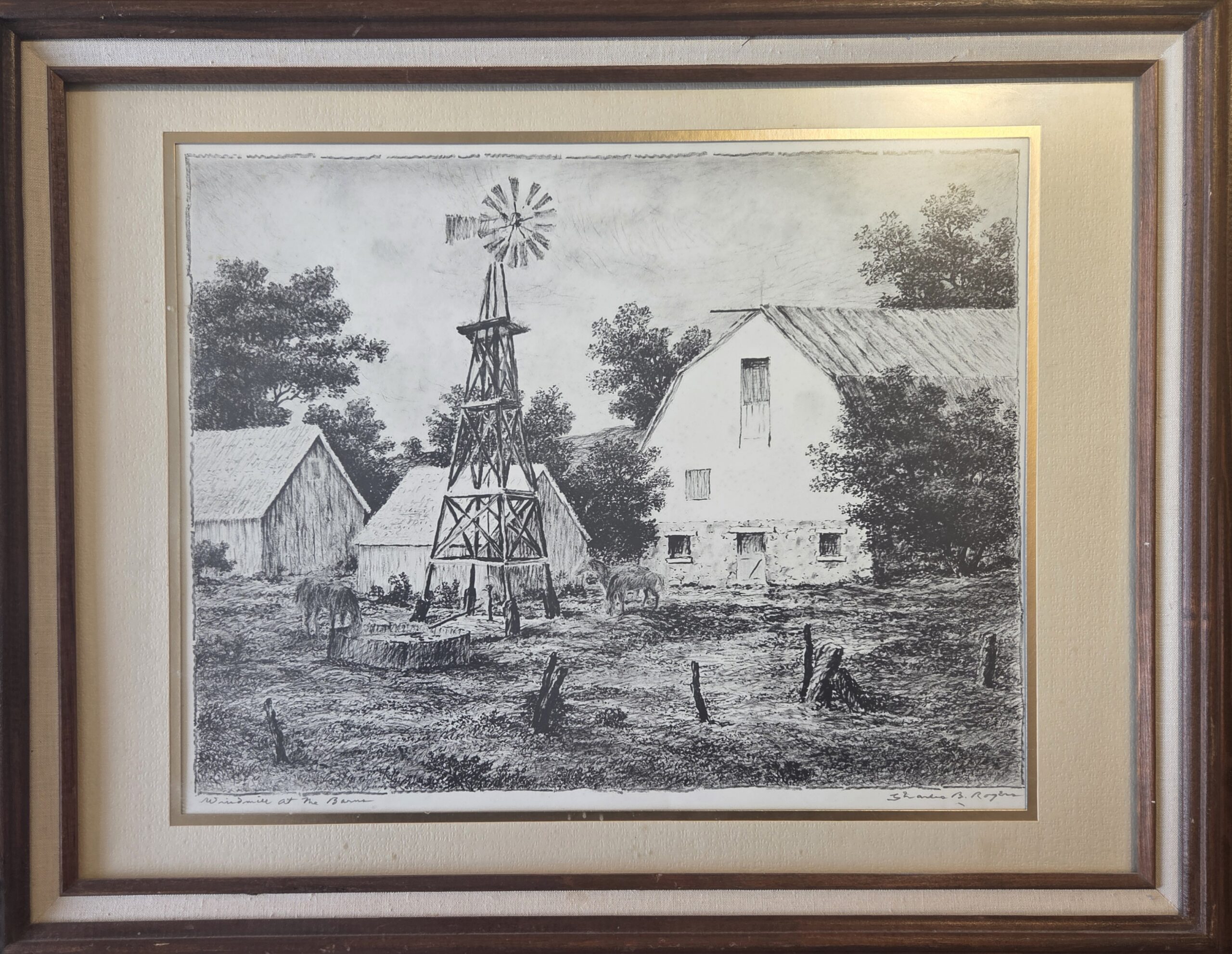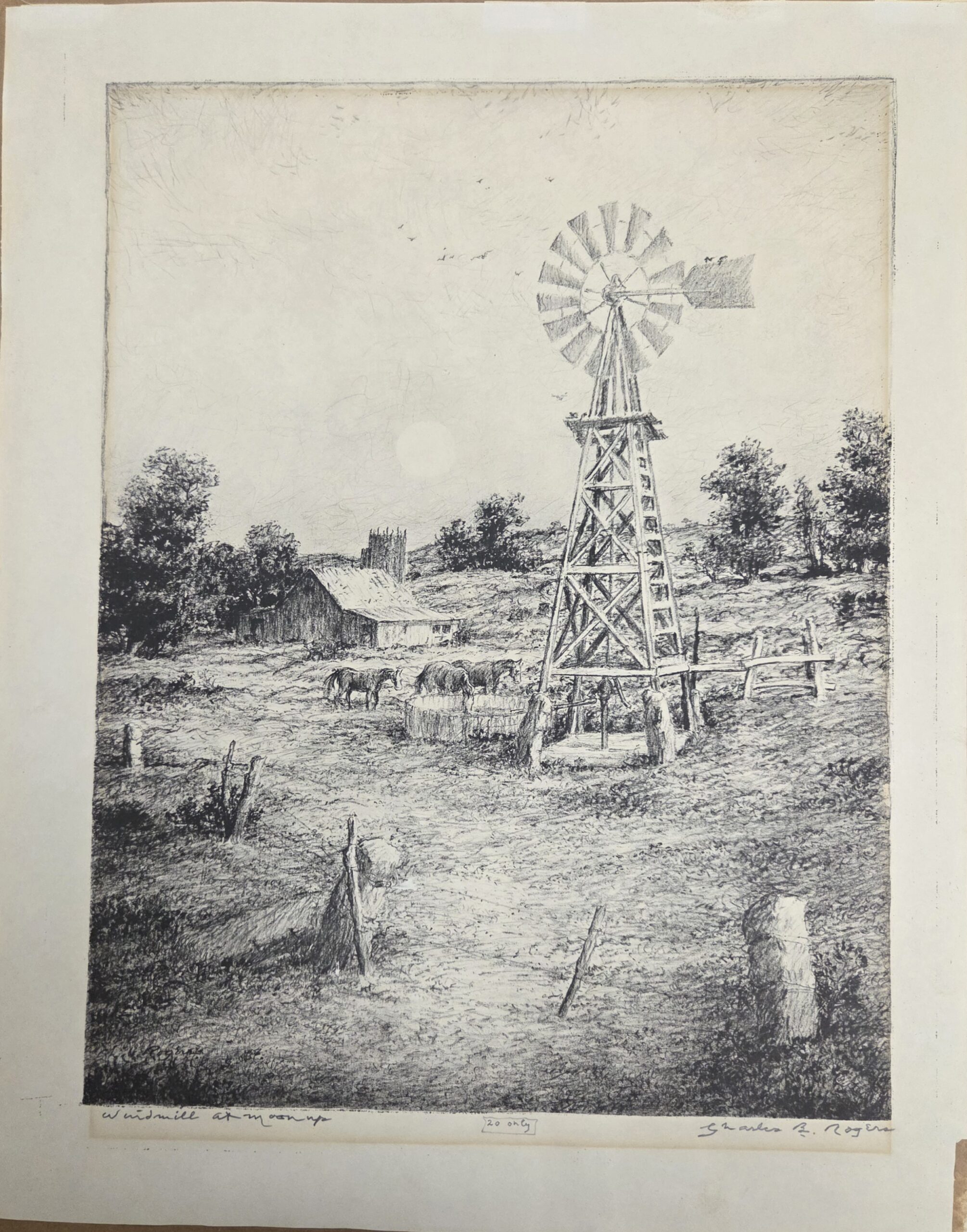 Old Windmill by Birger Sandzén, 1924, lithograph, completed in one edition of 100, 13 ¾ x 16 5/8 inches, acid-free matted in good condition. Price $625