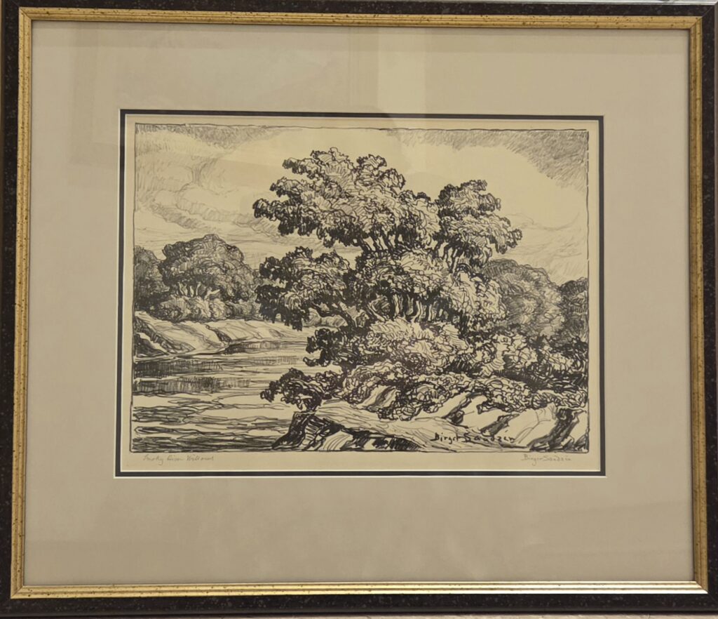 Smoky River Willows by Birger Sandzén, 1937, lithograph, completed in one edition of 100, 10 x 14 inches, framed, in good condition. Price $600