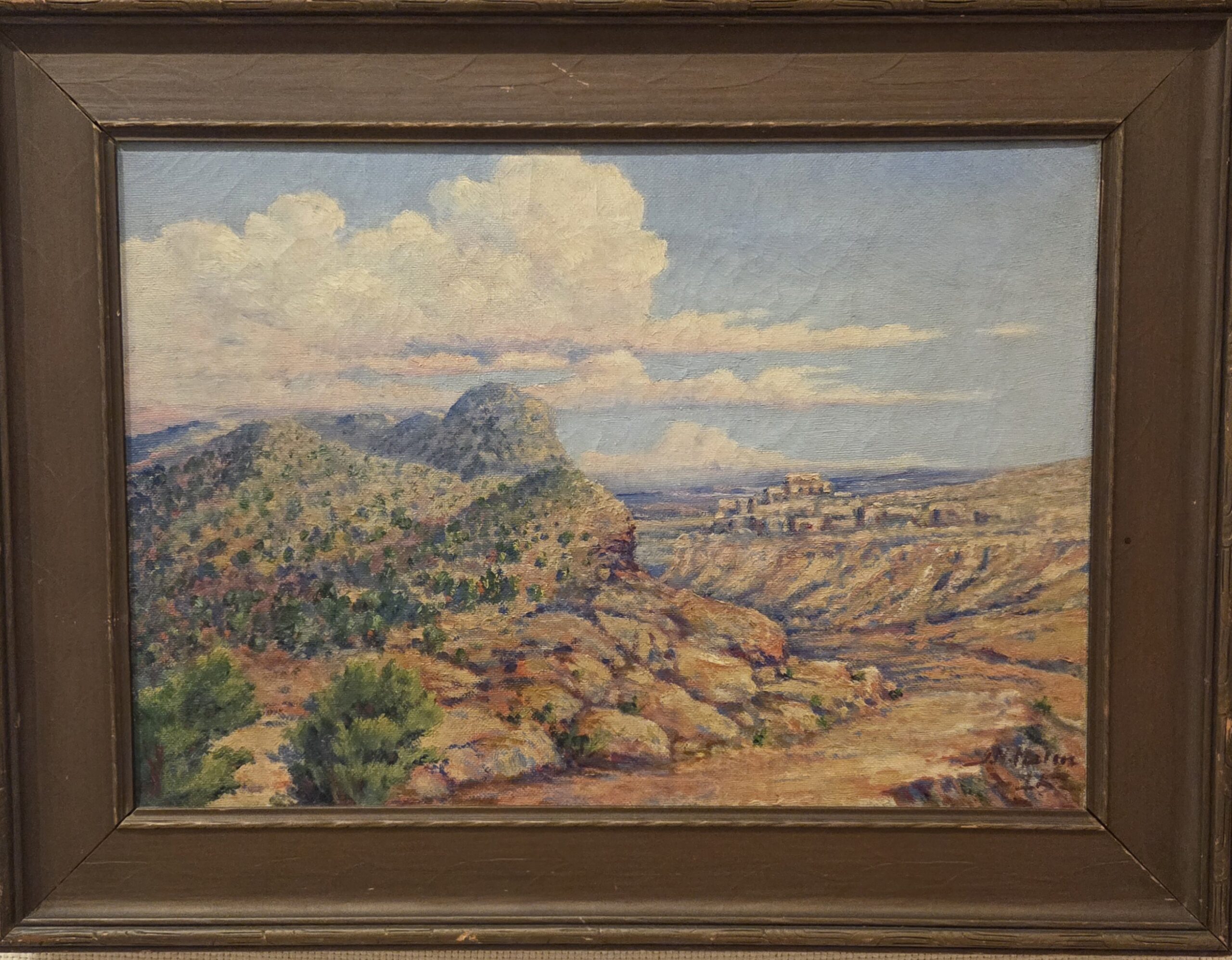 Taos Pass by G.N. Malm, 1915, oil on canvas, 14 x 20 inches, framed to 20 x 26 inches, in good condition. Price $300