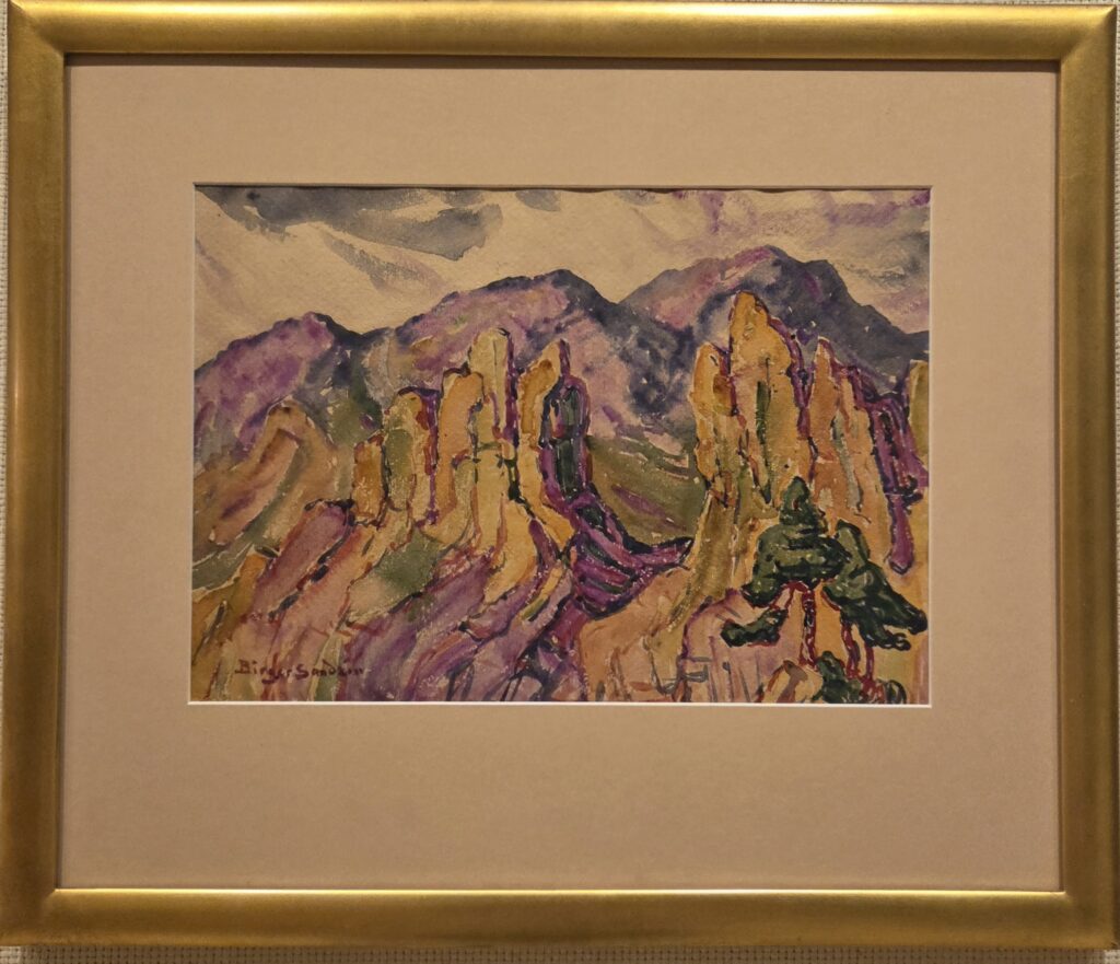 Untitled (Mountain Scape) by Birger Sandzén, circa 925, watercolor on paper, 9 1/4 x 13 inches, framed to 16 1/2 x 19 1/2 inches, in good condition. Price $10,000