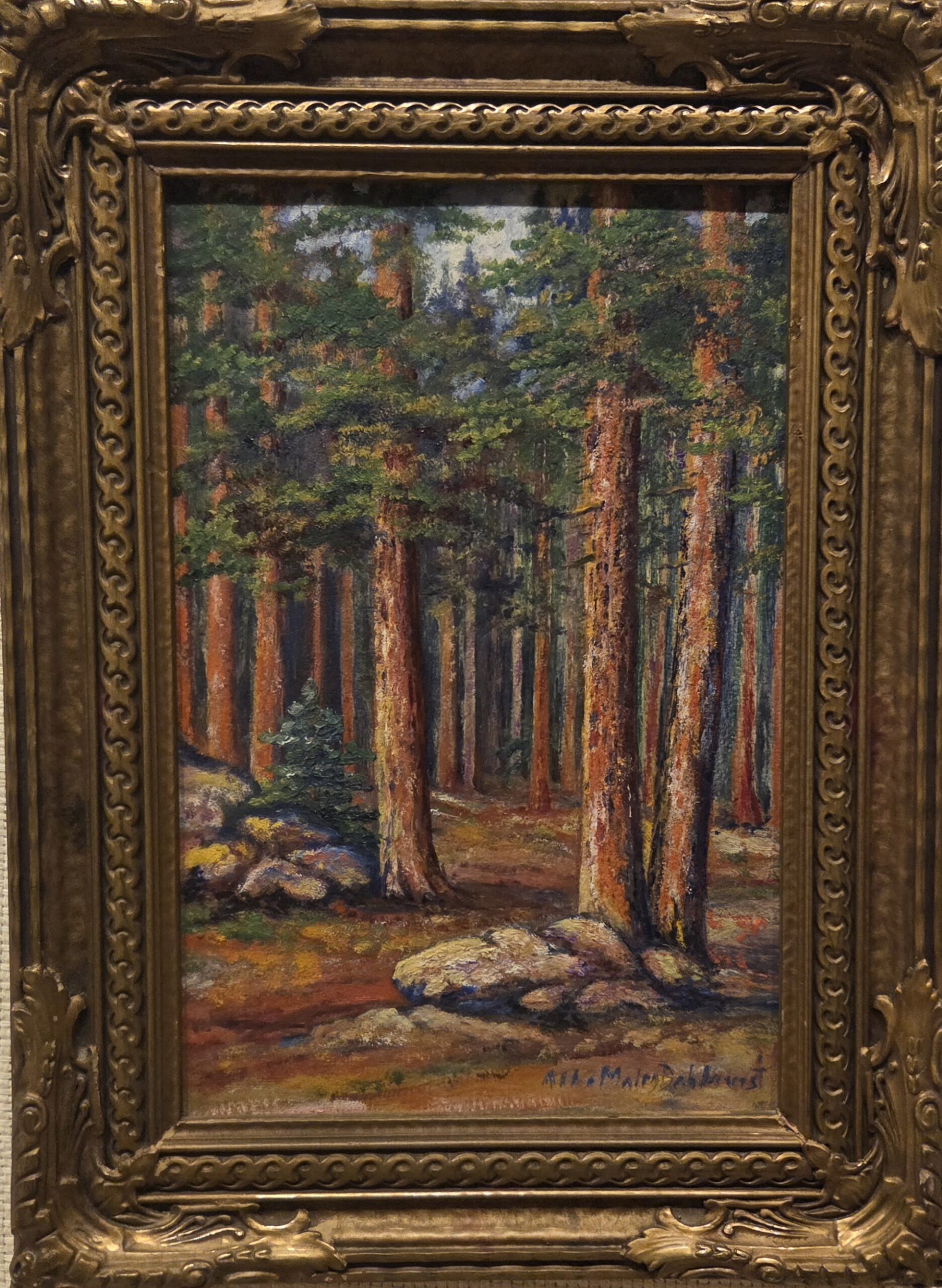 Untitled (Trees) by Alba Malm Dahlquist, undated, oil on board, 12 x 8 inches, in good condition. Price $200