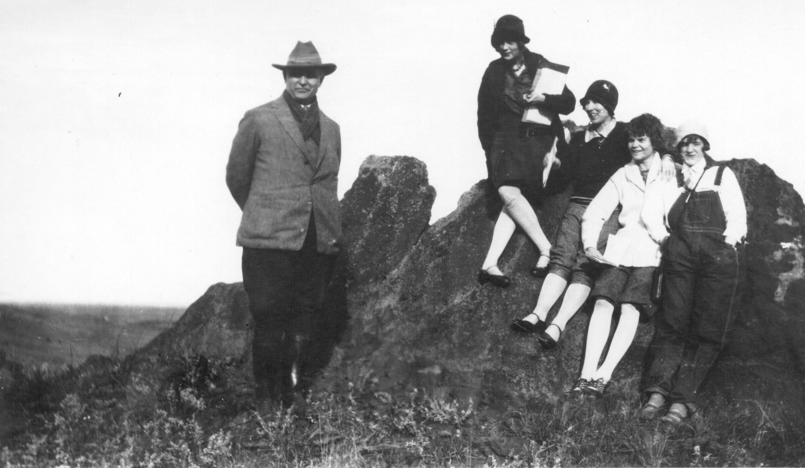 1929 Birger Sandzén and students on Salemsborg Hill.