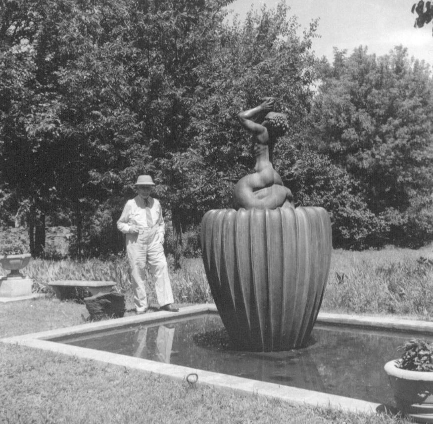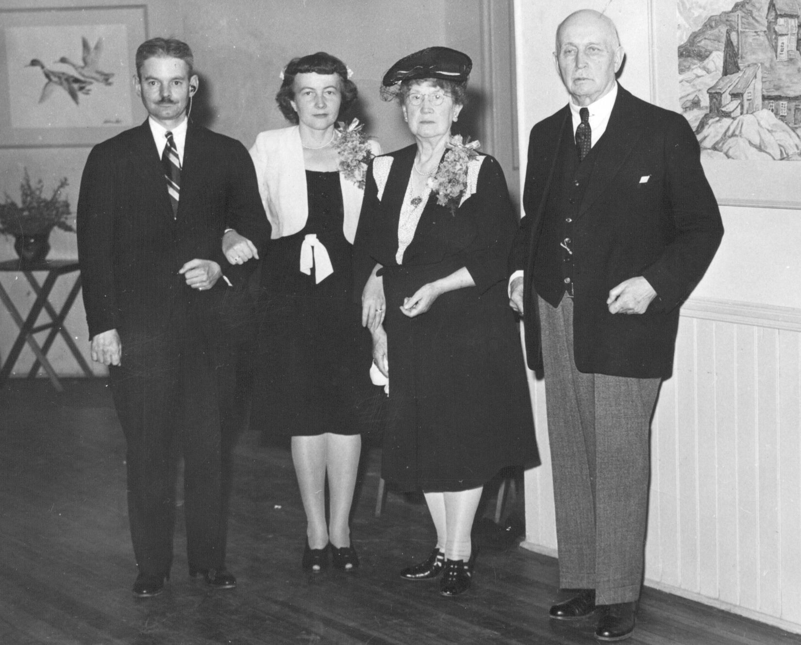 1946 Birger Sandzén with Pelham, Margaret and Alfrida.