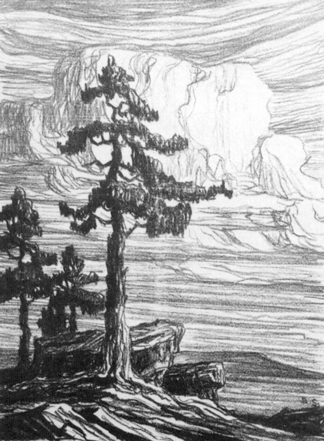 In a 1916 letter to former student Evelynn Johnson, he described his initial attempts in lithography: “I have done two experiments in lithography and I am glad to say they are a perfect success. Carl Smalley, a good friend from McPherson, has been after me a long time to do some work of this kind. When I did not get started quickly enough, he bought an outfit of lithographic crayons and sent it to me. I drew two landscapes – Colorado Pines and Dry Creek, sent them, or rather Carl Smalley sent them to a lithographic printing house in Philadelphia, which transferred them on stone and made proofs [an edition of 50], which I received a couple of days ago.”