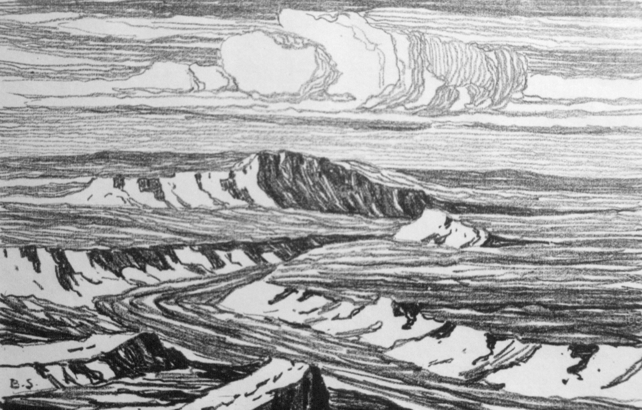 The graphic works (lithographs, block prints and drypoints) of Birger Sandzén represent a large and diverse body of images. Sandzén began printmaking at the urging of Carl Smalley, a book and art dealer in McPherson, Kansas. He received his first lithographs in mid-February 1916. Later, in August, he printed his first woodcut block print. It was not until March of 1918 that he would have an edition of drypoint images printed.