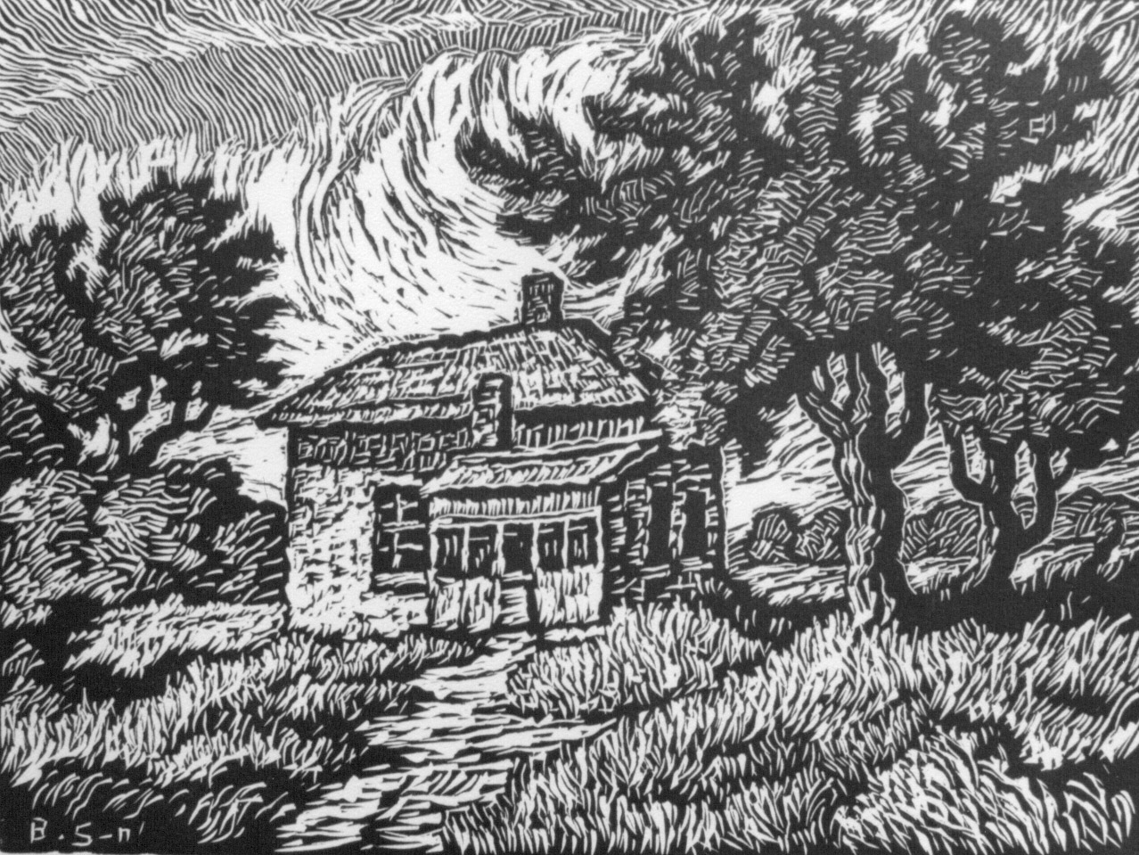 - Smoky Valley Homestead, 1929, linoleum cut, first state.